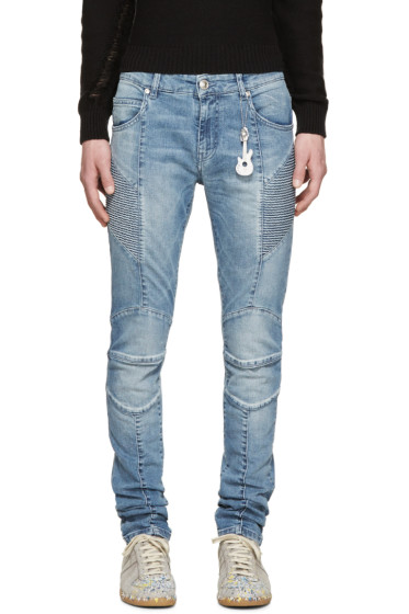 Blue Washed Biker Jeans