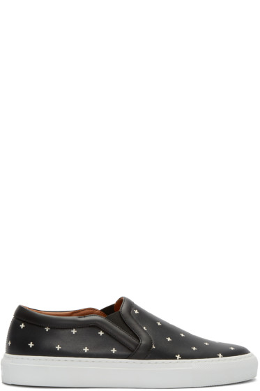 Black Cross Print Slip-On Sneakers